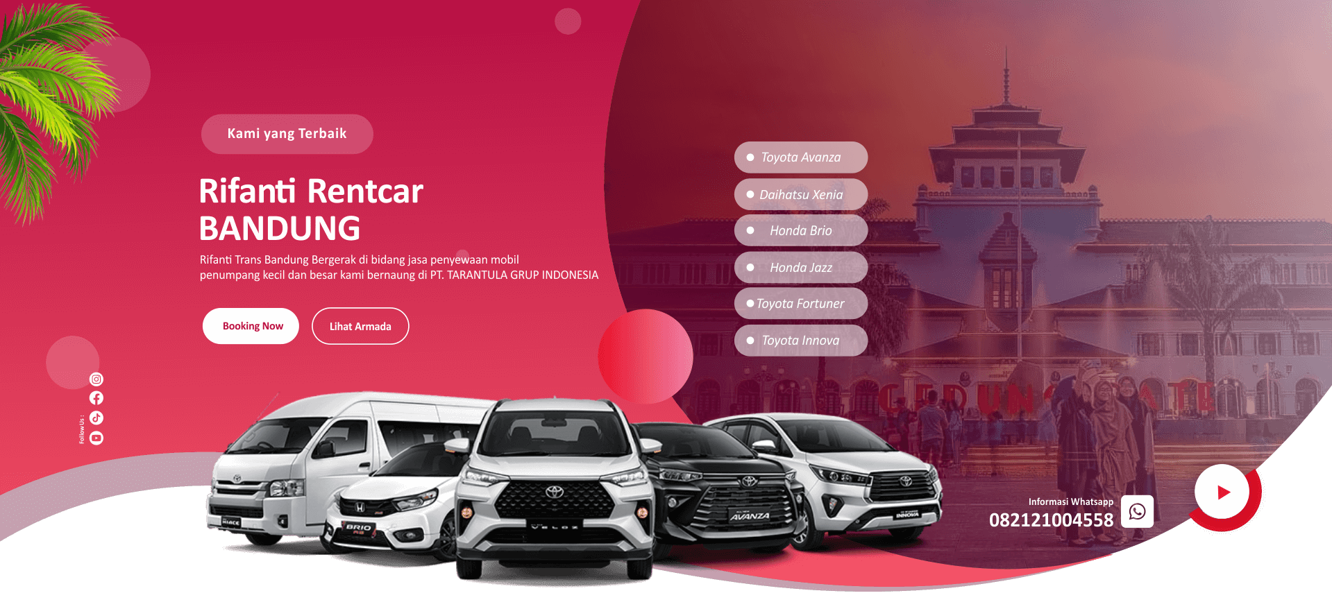 Rifanti Trans Bandung adalah sebuah layanan yang bergerak di bidang jasa penyewaan mobil penumpang. Perusahaan kami menjadi bagian dari PT. TARANTULA GRUP INDONESIA dan berlokasi di Jl. Turangga Barat II No 7 Lingkar Selatan, Kecamatan Lengkong, Kota Bandung, Jawa Barat 40263. Dengan lokasi strategis ini, kami telah menjadi salah satu pilihan utama bagi pelanggan yang membutuhkan layanan sewa mobil di daerah Bandung.